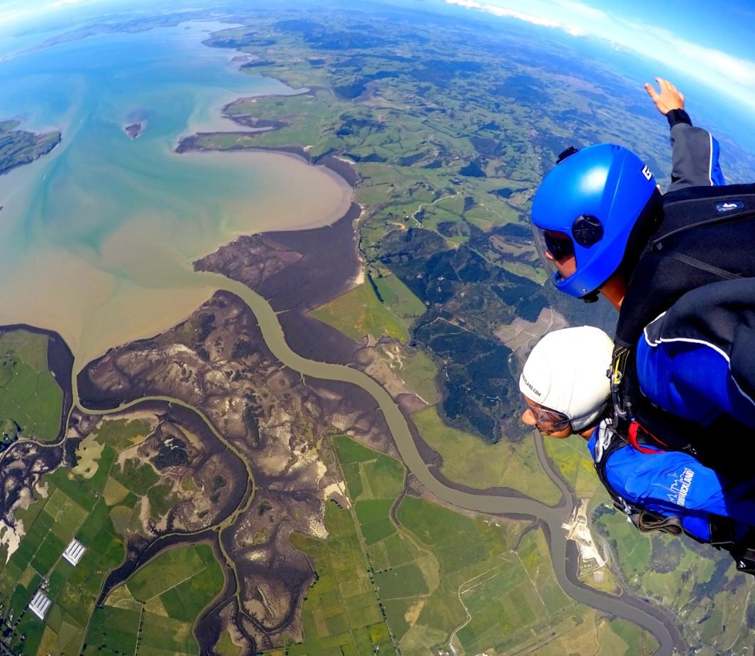 By the time the parachute deploys, you’ll have unlocked a new level of euphoria—or possibly just relief. The scenery, of course, is spectacular. Auckland’s coastline stretches out before you, the islands in the Hauraki Gulf dot the waters, and somewhere down there, people are enjoying a nice, safe coffee while you defy gravity.