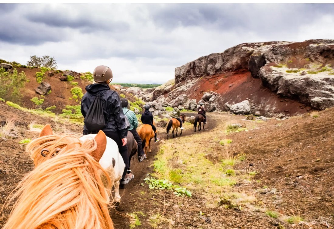 You haven’t truly been to Iceland until you’ve trotted through a lava field on a horse with bangs better than yours. Reykjavik may be known for its cool cafés, cozy sweaters, and Björk sightings, but just beyond the city lies something unforgettable: horseback riding across actual red lava. And not, this is not lava-lava, thankfully—no one’s getting toasted marshmallow legs here. What we’re talking about is the ancient kind: solidified, otherworldly, Mars-looking stuff. And guess what? The horses are just as magical so you can look forward to something out of this world.