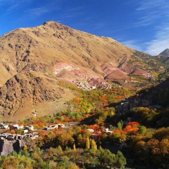 We set out early in the morning, using a well-traveled path to the summit. Reaching the peak, where we take in vast views of the entire Atlas range and the plains beyond Marrakech. It shouldn’t take longer than 2-3 hours if the weather is favourable. After returning to the starting point, we quickly descend to the towns of Sidi Chamharouch and Aremd before continuing over a heavily forested track that follows the Mizane River to the trailhead at Imlil. At the end of the day, you will be driven to Marrakech if you are staying there. 9 to 10h walk. That’s the last day of our Toubkal circuit Trek.