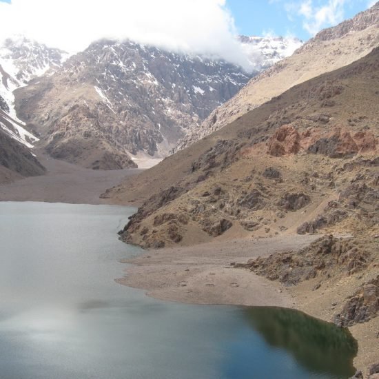 We descend into the valley of Islani through Ibrouane and villages Tisgouane Takatert reach Lake Ifni (2295 m), which is at the bottom of a valley surrounded by the peaks of Jebel Toubkal. We spend an awesome night at the lake. 5 hours walking.