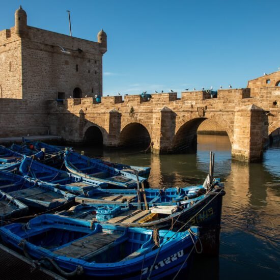 The final leg of the trip leads to the coastal town of Essaouira, known for its bohemian vibe and rich history. Here, you’ll explore the UNESCO-listed medina, characterized by its blue and white color scheme and bustling souks. The town’s laid-back atmosphere is perfect for a leisurely evening stroll along its sandy beach or enjoying fresh seafood at a seaside restaurant. The rhythm of the waves and the scent of the ocean create a sense of calm, rounding off your journey with a relaxing night. Combining the mountains, desert, and coast, this trip encapsulates the essence of Morocco’s diverse landscapes and cultures. Come join us in this amazing Atlas hike & Agafay desert & Essaouira trip!