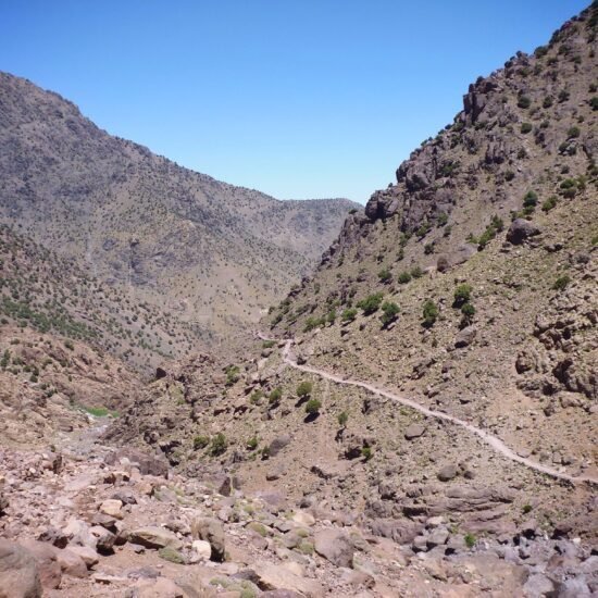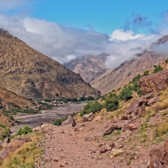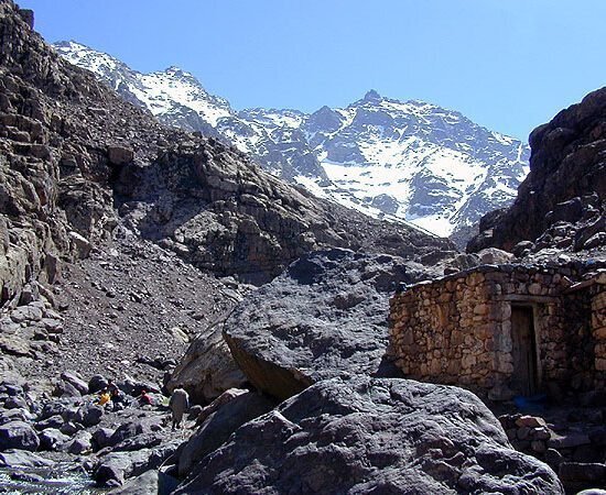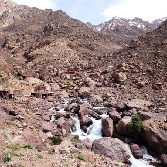 The day hike to the Sidi Chamharouch Shrine from Imlil Valley is a captivating journey through the rugged landscapes of Morocco’s High Atlas Mountains. Beginning in the charming village of Imlil, the trail ascends steadily through terraced farmland, walnut groves, and rocky paths, offering stunning views of Mount Toubkal and the surrounding peaks. Along the way, hikers encounter Berber villages like Aroumd, where traditional mud-brick houses cling to the slopes, and locals often offer refreshments or handcrafted goods. The vibrant blend of natural beauty and cultural immersion makes the hike an unforgettable experience for adventurers and nature enthusiasts alike.