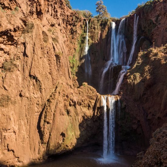 Pick up from your Hotel in Marrakech at 8 a.m . Drive to Ouzoud falls which are located at 170Km from Marrakech. It’s one of the most beautiful natural attractions. Ouzoud waterfalls are in the middle Atlas section close to Azilal city. A 3 hours drive from Marrakech, you will be able to discover the highest waterfalls of the Morocco. Once you get there, you will go on a guided walk around the waterfalls. After that, back to a local restaurant where you will have a delicious lunch before transfer back to Marrakech. Drop off at your Hotel in Marrakech. End of our nice ouzoud waterfalls day trip.